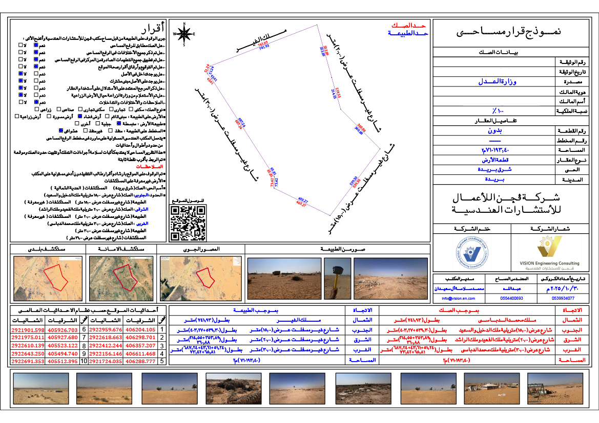 الطول: 403.27+539.30 الحد: شارع عرض 15م يليه ملك الغير