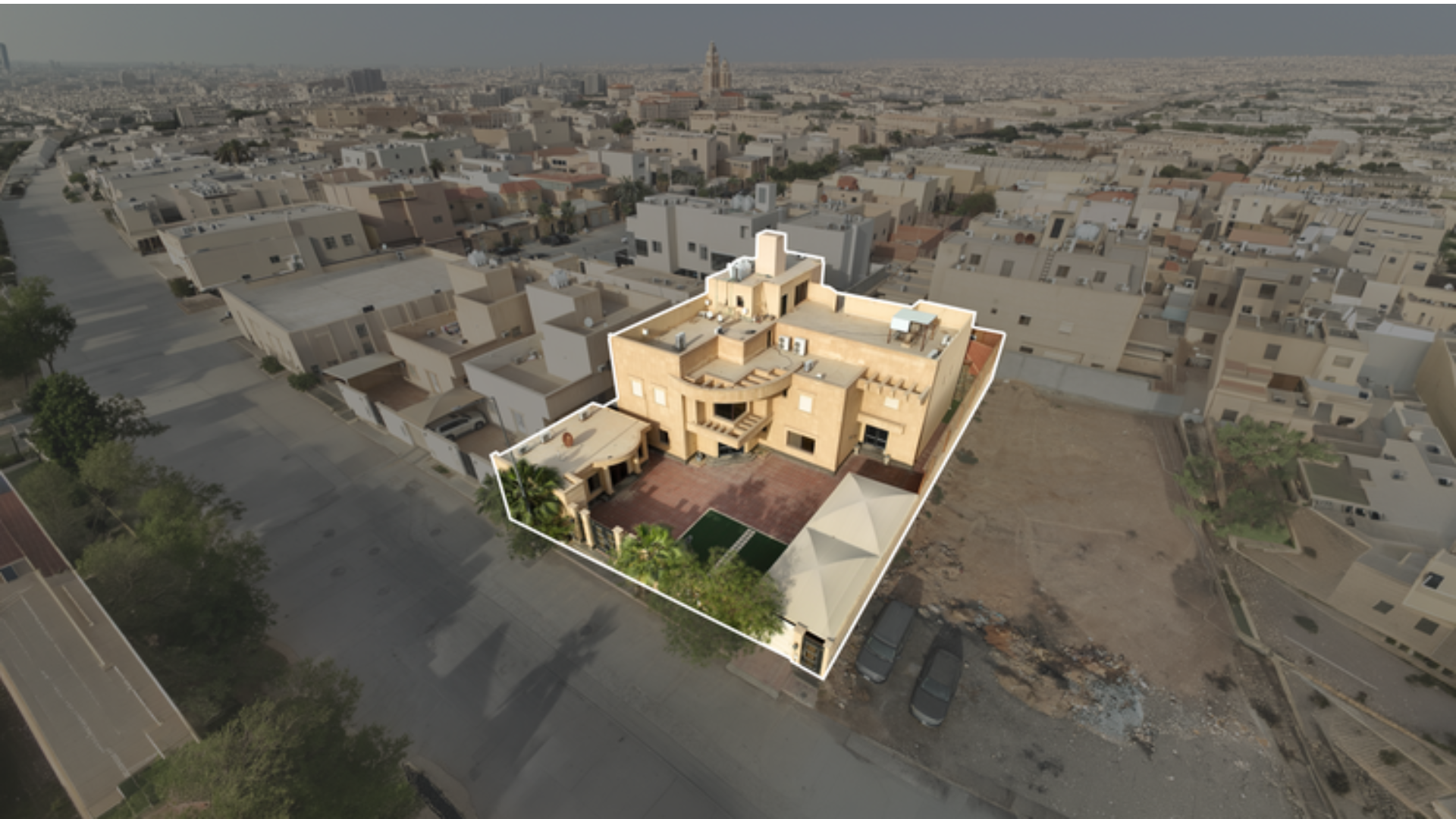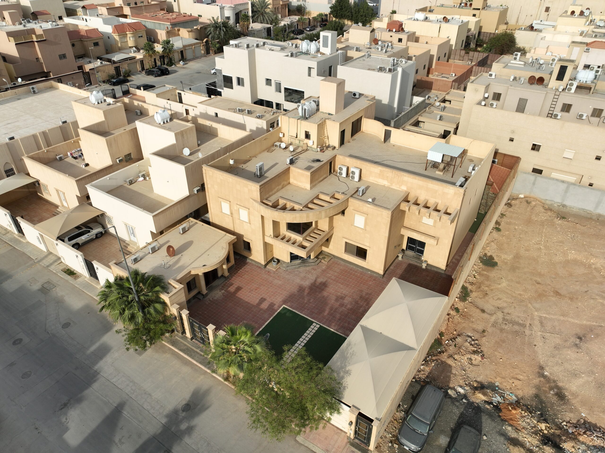 العقار عبارة عن فيلا مكونة من ( دورين + ملحق علوي + ملاحق أرضية + مظلات من " القماش " ) ، الدور الأرضي مكون من ( 3 مجالس + غرفة طعام + صالة + غرفة + مطبخ + 3 دورات مياه ) ، الدور الأول مكون من ( 9 غرف + مطبخ + صالة + غرفة ملابس + 7 دورات مياه ) ، الملحق العلوي يتكون من ( غرفتين + دورتين مياه ) ، " الملاحق الأرضية " : الملحق الأرضي الأول مكون من ( غرفة + مطبخ + دورتين مياه ) ، الملحق الأرضي الثاني مكون من ( مجلس + غرفة سائق + دورة مياه )